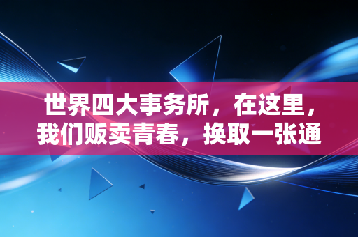 站在北京国贸三期或者上海中心大厦的落地窗前,俯瞰脚下川流不息的车灯,你很难不被那种掌控全局的错觉所迷惑,对于很多刚毕业的财经类大学生来说,这种错觉往往伴随着一个特定的标签——“世界四大事务所”(简称“四大”),普华永道(PwC)、德勤(Deloitte)、毕马威(KPMG)、安永(EY),这四个名字就像是刻在金融金字塔尖的图腾,既神圣又充满诱惑。