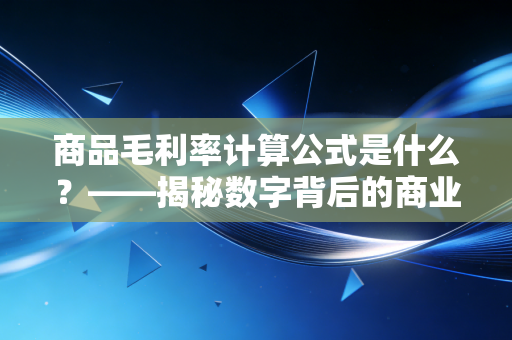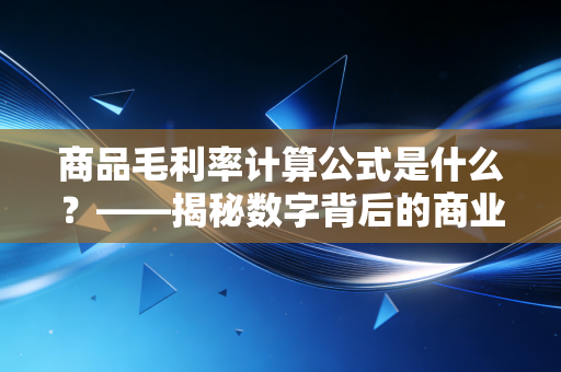 你好,我是你们的老朋友,一个在注会行业摸爬滚打多年的“财务老中医”,我们不聊枯燥的会计准则,也不谈那些让人头秃的审计底稿,我们来聊聊一个既基础又深刻,甚至能决定一家企业生死存亡的核心指标——商品毛利率。