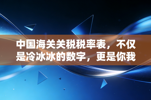 中国海关关税税率表,看似冰冷,实则充满温度,它保护了国内的幼稚产业,也丰富了我们的物质生活,无论是作为消费者的你,还是作为经营者的你,下次再看到这几个字时,希望你能明白,它就在你身边,值得你花一点时间去读懂它,毕竟,在这个全球化的时代,没有人是一座孤岛,关税就是我们与世界连接的那个“接口”。