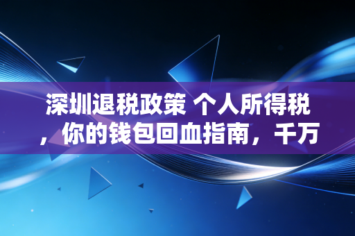 看着大家又惊又喜的样子,我忍不住笑了,作为一名专业的注会行业写作者,今天我就不给大家讲那些晦涩难懂的税法条款了,咱们就坐下来,像喝早茶一样,好好聊聊深圳退税政策 个人所得税那些事儿,这篇文章不仅要把政策讲透,还要教你怎么把落在口袋里的钱捡回来,字数有点多,但全是干货和心里话,建议你先收藏,慢慢看。