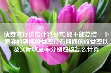 债券发行价格计算公式,能不能总结一下债券的到期收益率持有期间的收益率以及实际收益率分别应该怎么计算?