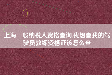 - 上海一般纳税人资格查询,我想查我的驾驶员教练资格证该怎么查?