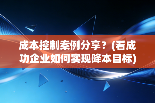 为啥突然搞成本控制?